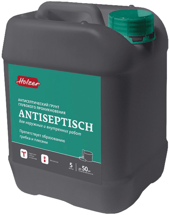 Хольцер Антисептиш идеален для подготовки оснований перед оштукатуриванием, устройством наливных стяжек и плиточных облицовок, шпатлеванием, окраской, оклейкой обоями и укладкой напольных покрытий в помещениях с высоким уровнем влажности воздуха.