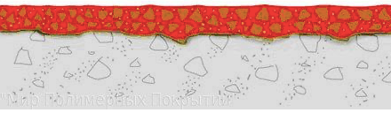 Композиция выливается на заранее подготовленное основание и равномерно распределяется при помощи металлической ракли с заранее выставленным зазором. Для удаления вовлеченного воздуха, уплотнения и получения равномерного по толщине покрытия, нанесенную композицию прокатывают игольчатым валиком в течении 10-15 мин после нанесения.