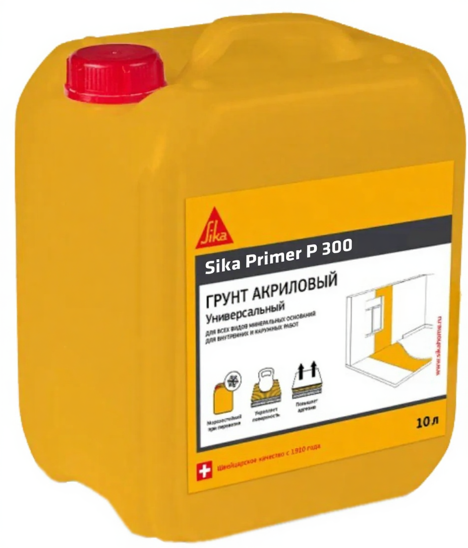 SikaTile P 300 — однокомпонентная акриловая грунтовка для впитывающих оснований. Предназначена для подготовки поверхностей перед дальнейшей отделкой: укладкой плитки и мрамора, штукатуркой, самовыравнивающимися смесями, окраской и приклеиванием обоев. Грунтовка укрепляет поверхность, улучшает адгезию и защищает тонкослойные растворы от слишком быстрого обезвоживания.