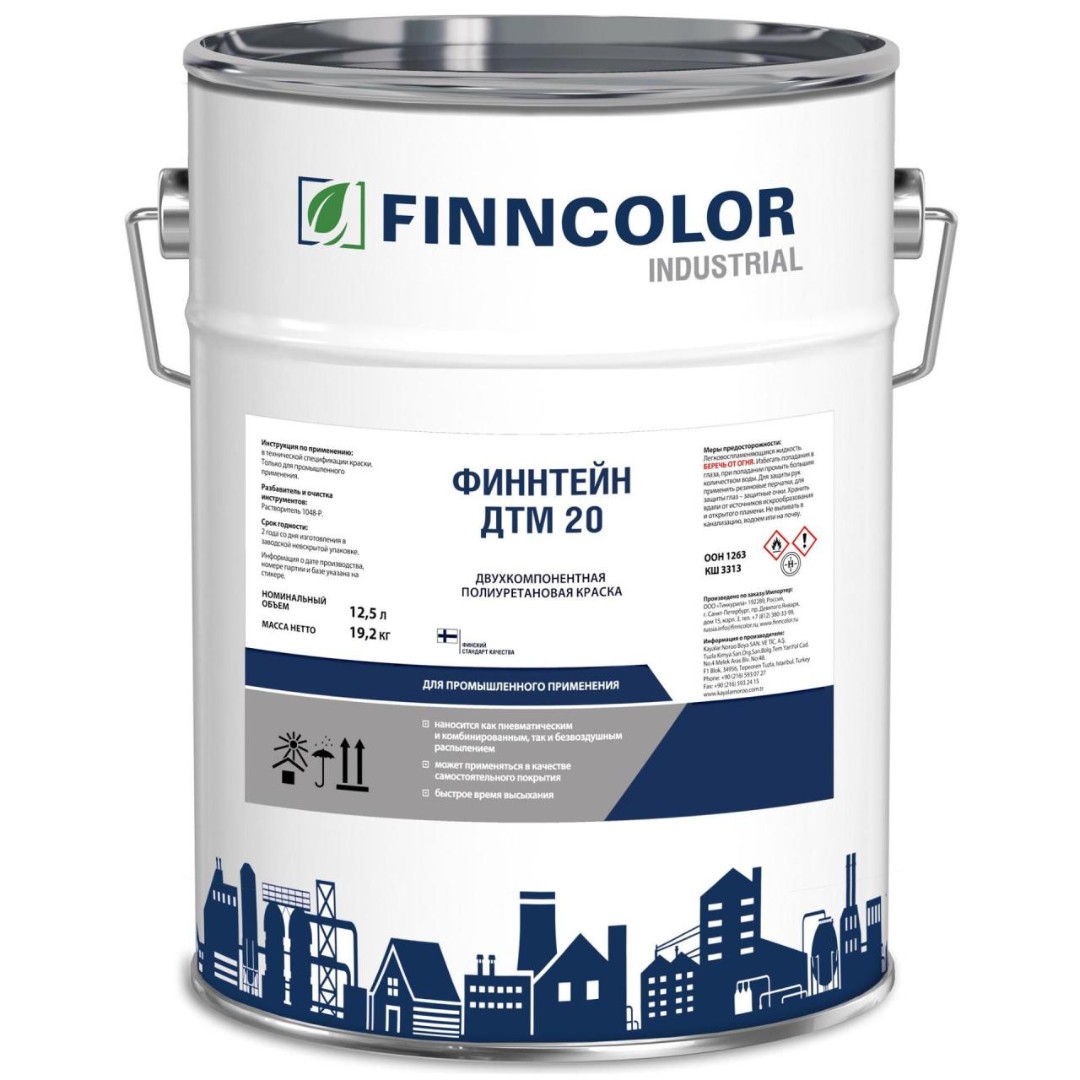 Двухкомпонентная матовая полиуретановая грунт-эмаль FINNCOLOR INDUSTRIAL ФИННТЕЙН ДТМ 20, предназначенная для окраски металлических поверхностей.